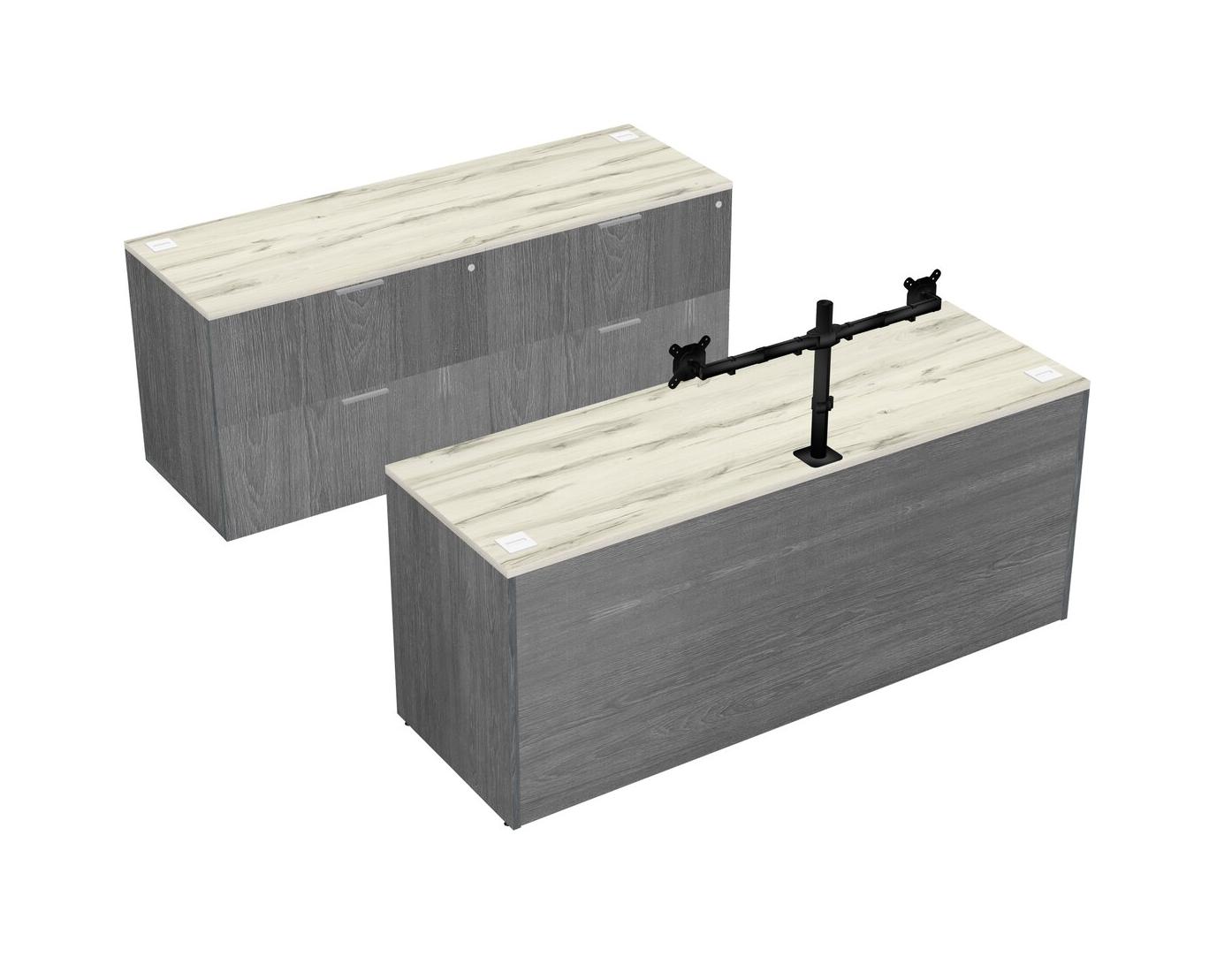 Heinne Holz Office Parallel Desk With Lateral File Cabinet + Monitor Arm (double Arms)