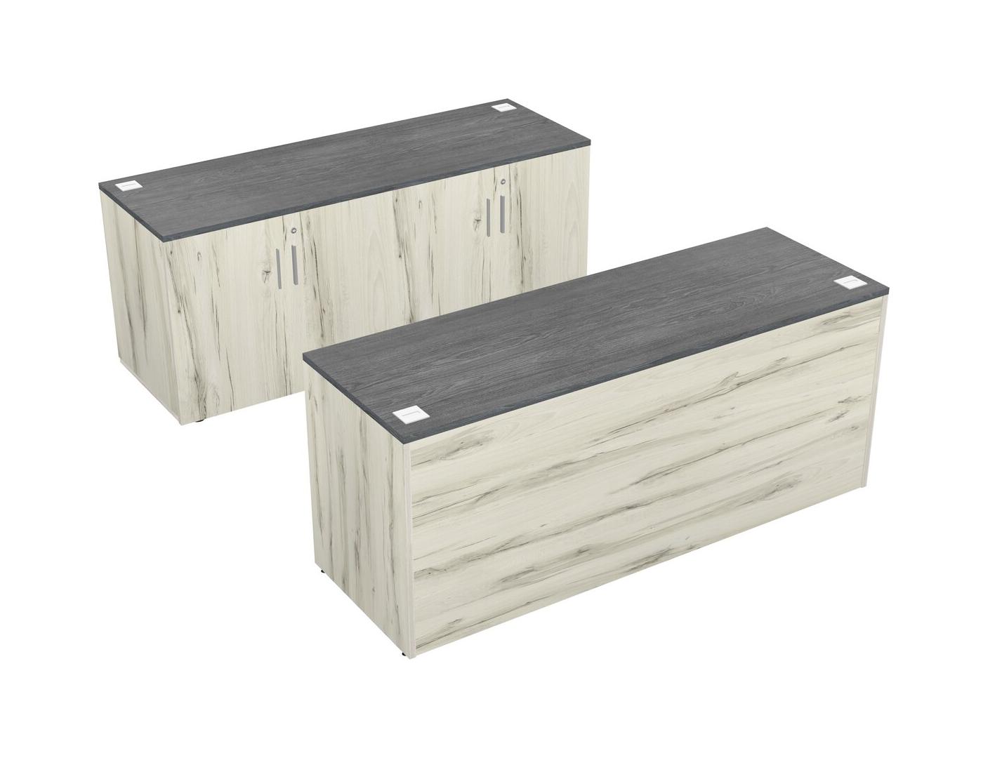 Grey Office Parallel Desk With Storage Cabinet + Wooden Mobile Drawers