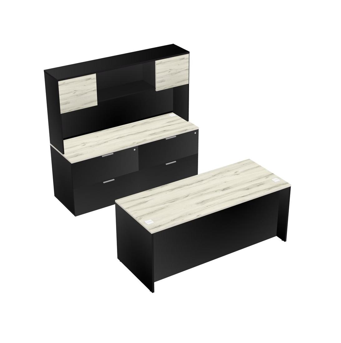 Heinne Holz Office Parallel Desk With Lateral File Cabinet + Hutch