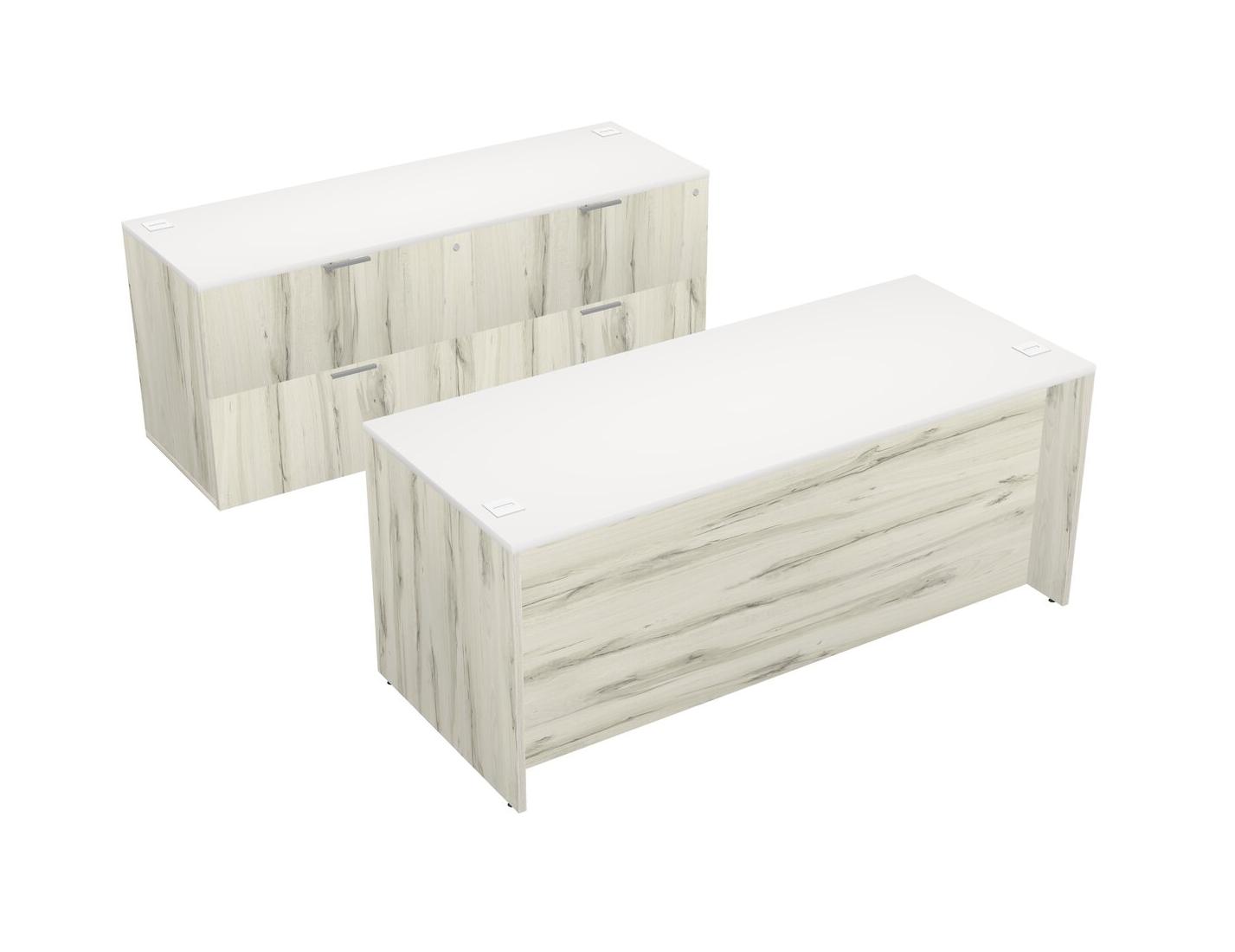White Office Parallel Desk With Lateral File Cabinet + Wooden Mobile Drawers