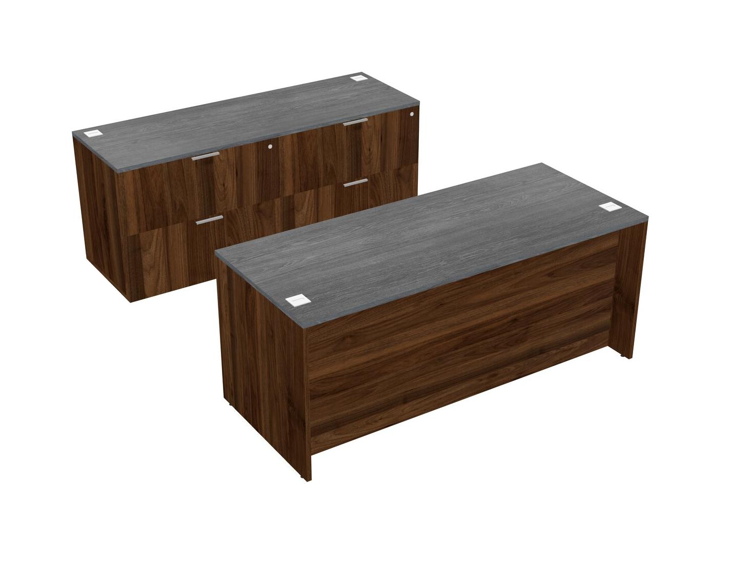 Grey Office Parallel Desk With Lateral File Cabinet + Wooden Mobile Drawers