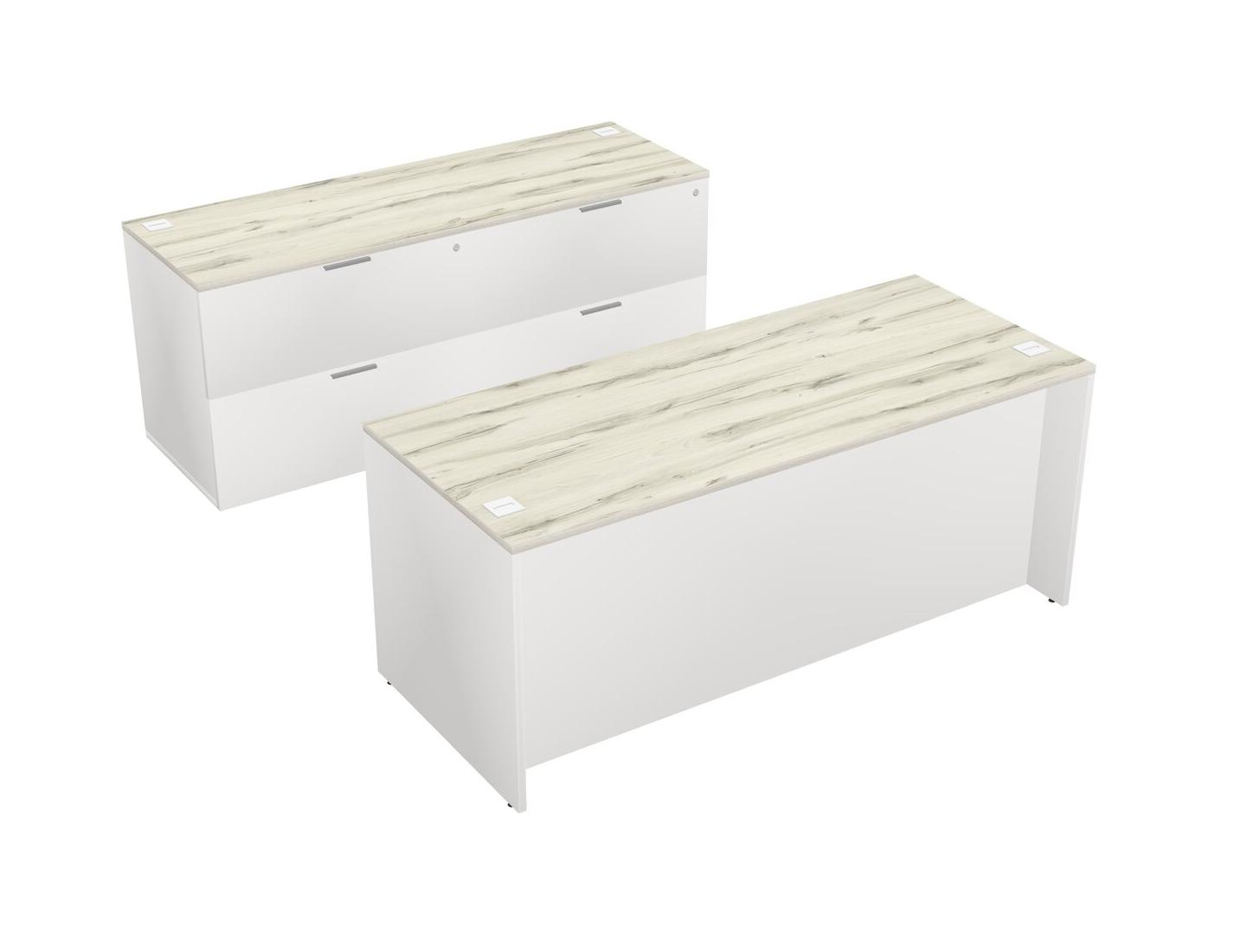 Heinne Holz Office Parallel Desk With Lateral File Cabinet + Wooden Mobile Drawers