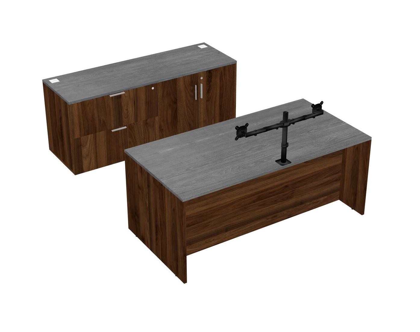 Grey Office Parallel Desk With Lateral Storage Combo + Monitor Arm (double Arms)