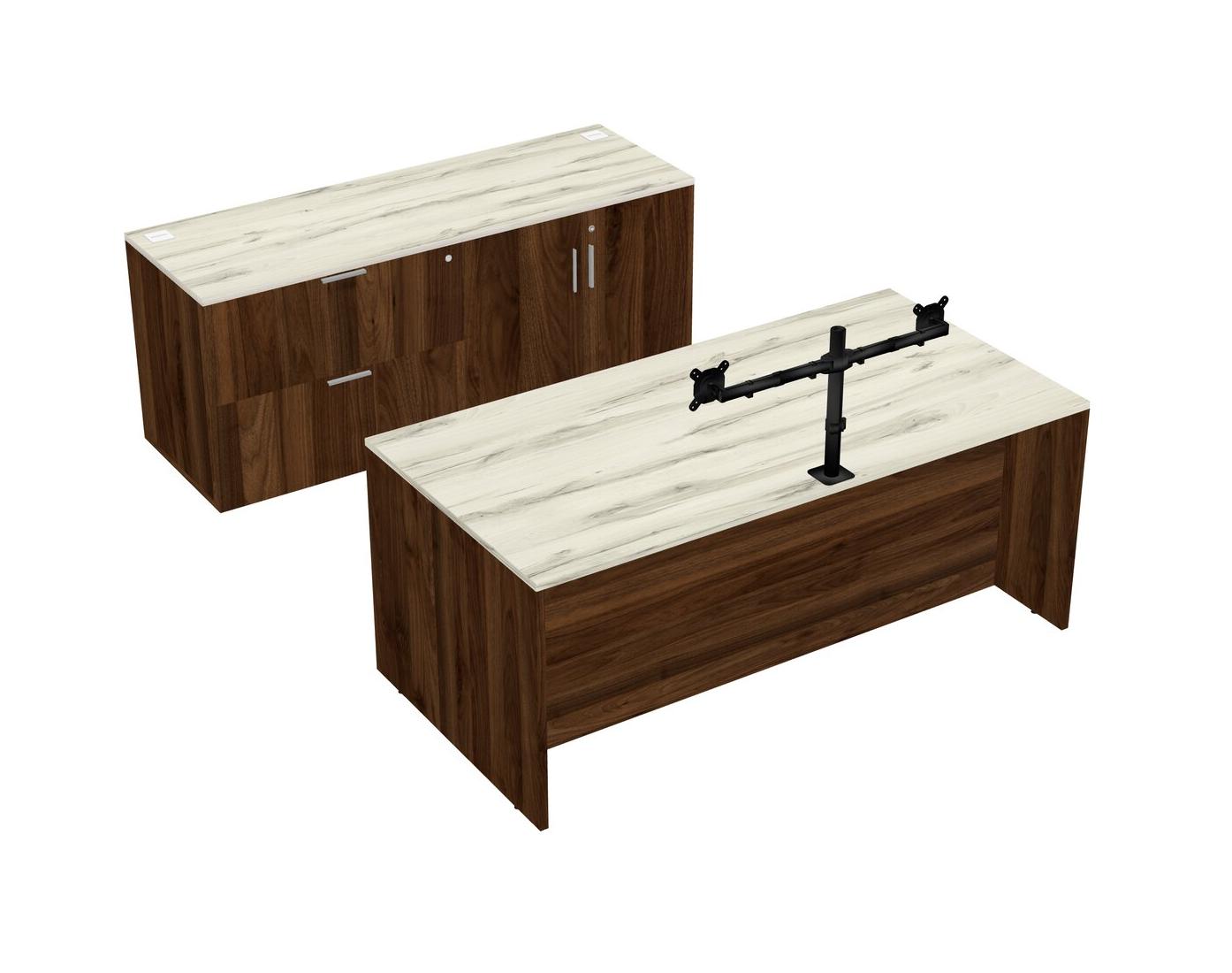 Heinne Holz Office Parallel Desk With Lateral Storage Combo + Monitor Arm (double Arms)
