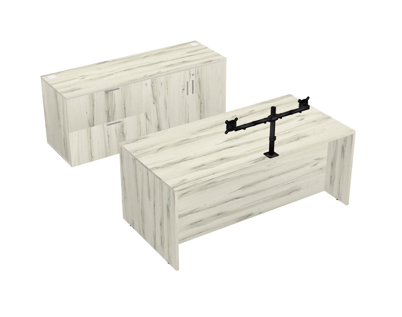 Heinne Holz Office Parallel Desk With Lateral Storage Combo + Monitor Arm (double Arms)