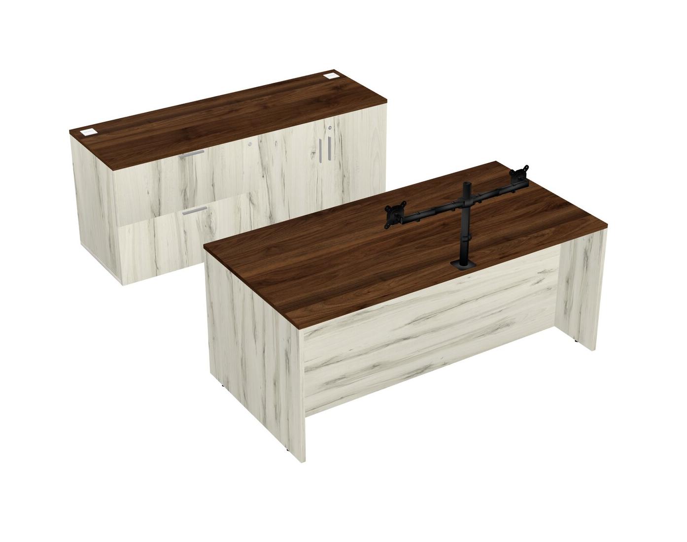 Columbia Walnut Office Parallel Desk With Lateral Storage Combo + Monitor Arm (double Arms)