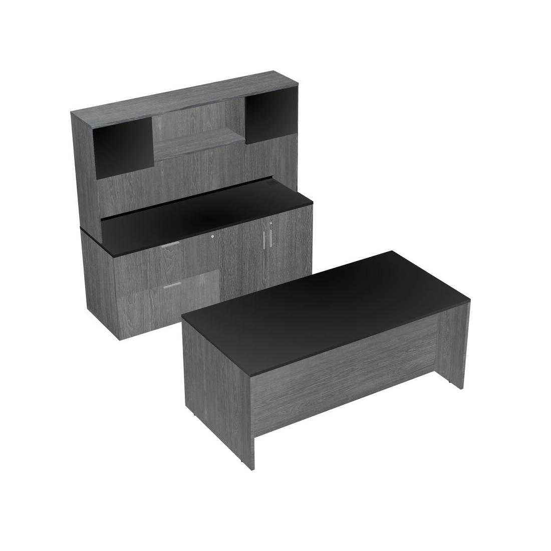 Black Office Parallel Desk With Lateral Storage Combo + Hutch