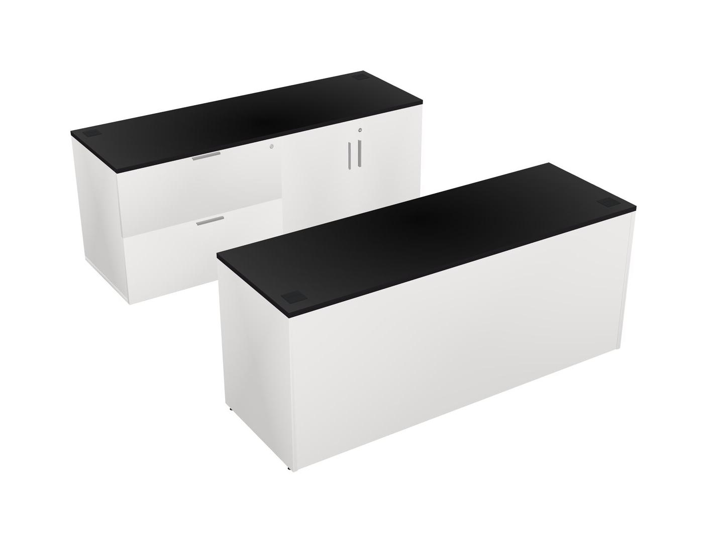 Black Office Parallel Desk With Lateral Storage Combo + Wooden Mobile Drawers