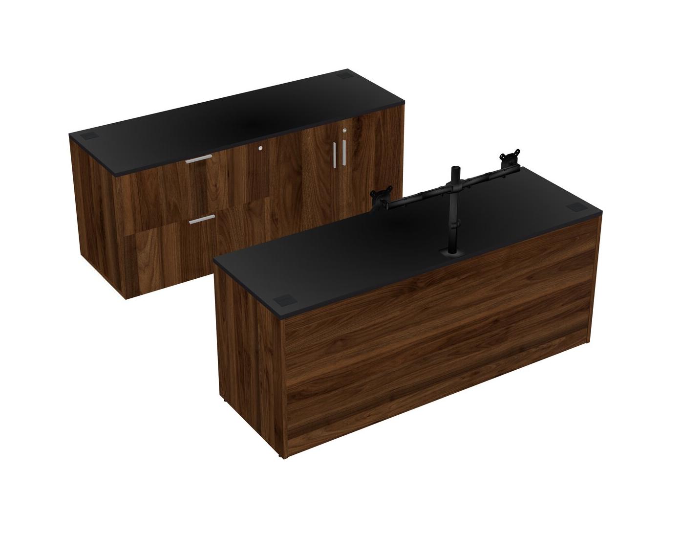Black Office Parallel Desk With Lateral Storage Combo + Monitor Arm (double Arms)