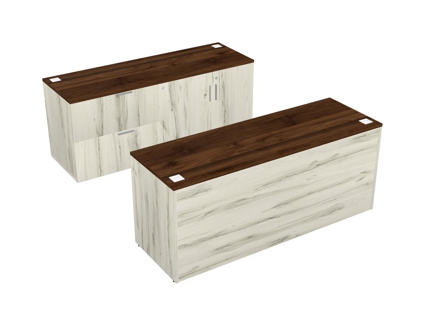 Columbia Walnut Office Parallel Desk With Lateral Storage Combo + Wooden Mobile Drawers