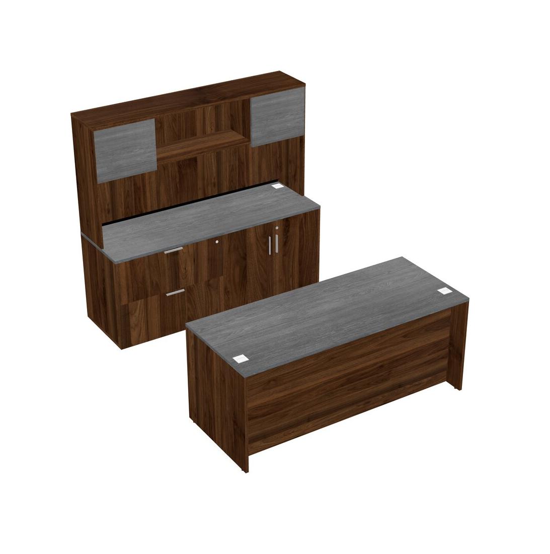 Grey Office Parallel Desk With Lateral Storage Combo + Hutch