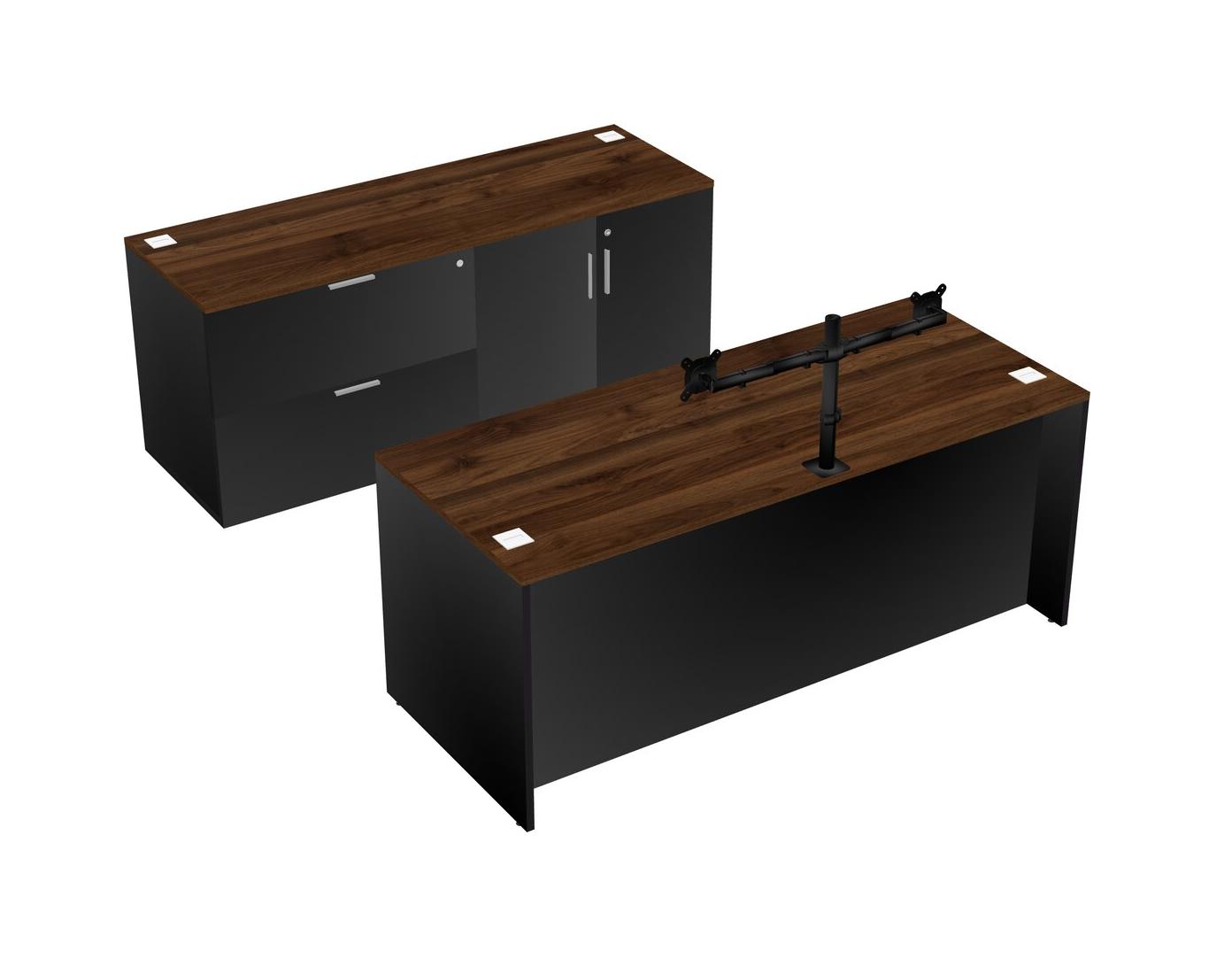 Columbia Walnut Office Parallel Desk With Lateral Storage Combo + Monitor Arm (double Arms)