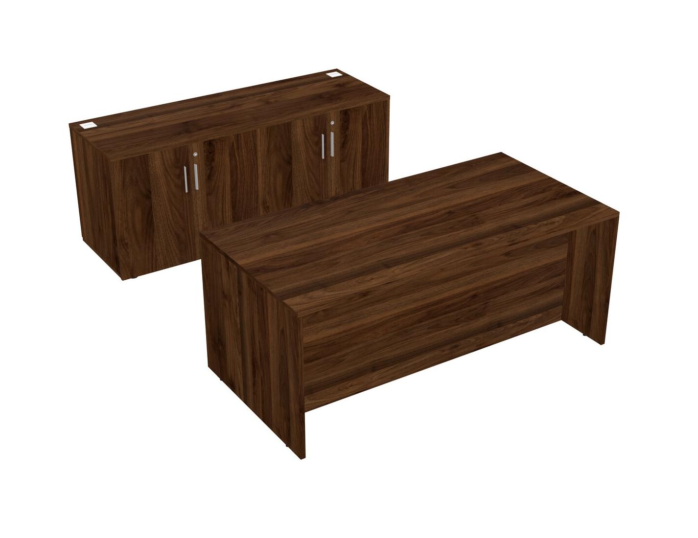 Columbia Walnut Office Parallel Desk With Storage Cabinet