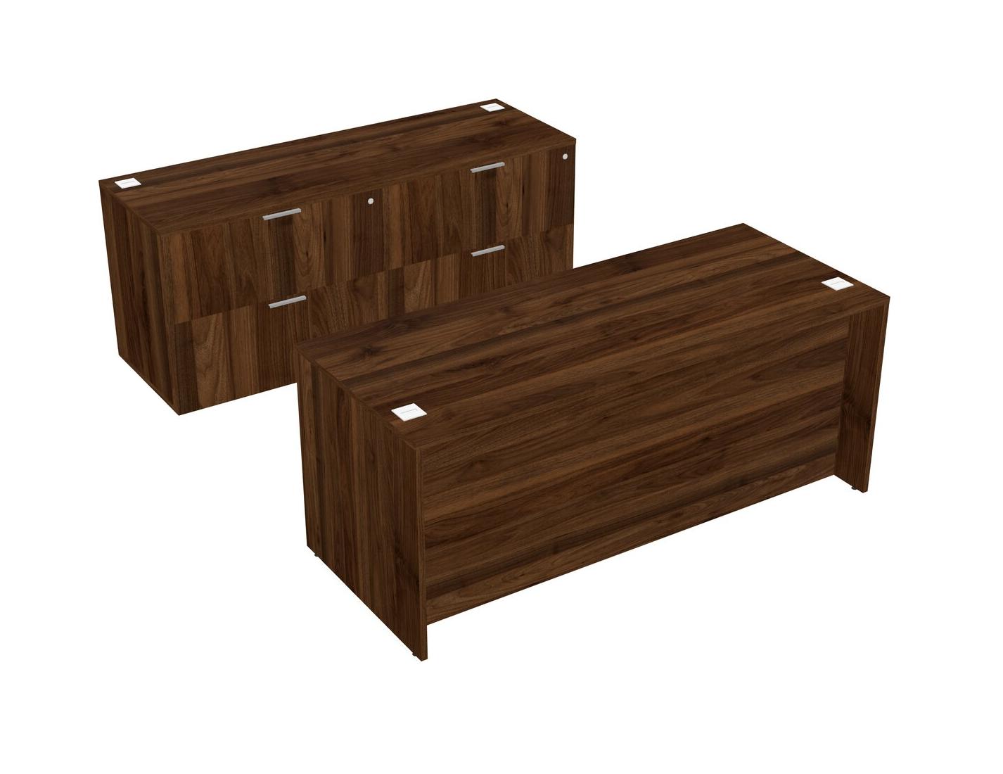 Columbia Walnut Office Parallel Desk With Lateral File Cabinet