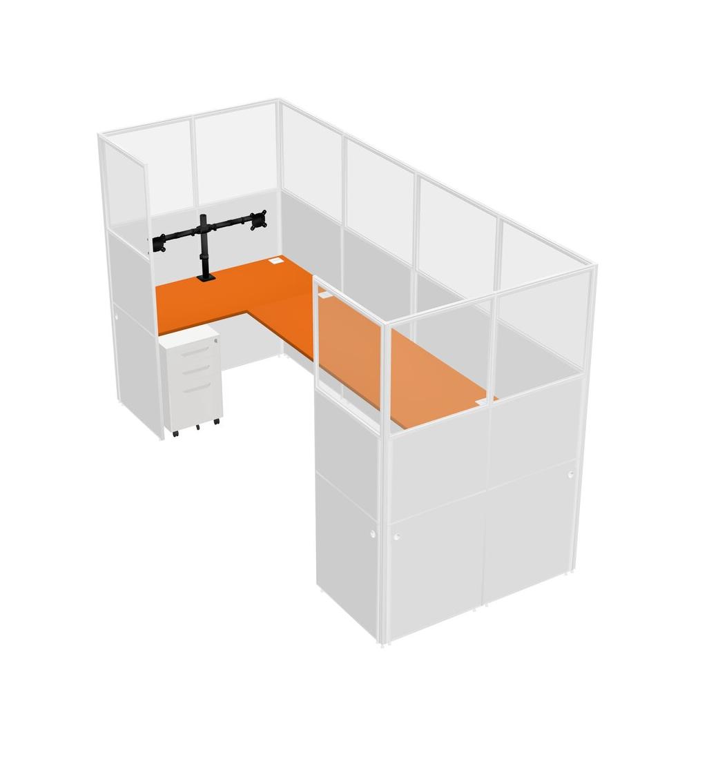 Orange U-shaped Panel System For 1 Person + Monitor Arm (double Arms) + Metal Mobile Drawers For 1 User(s)