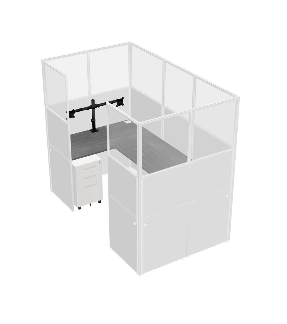 Grey U-shaped Panel System For 1 Person + Monitor Arm (double Arms) + Metal Mobile Drawers For 1 User(s)