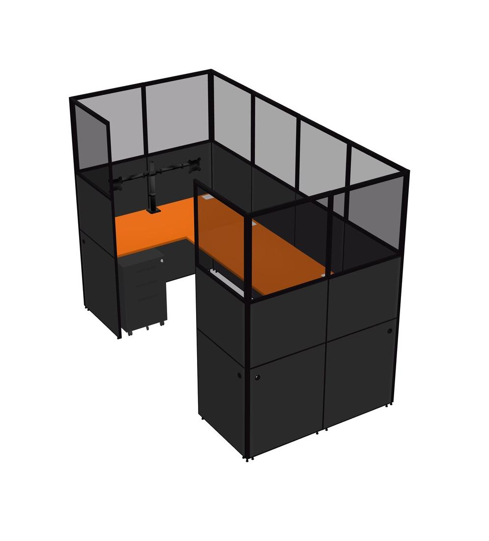 Orange U-shaped Panel System For 1 Person + Monitor Arm (double Arms) + Metal Mobile Drawers For 1 User(s)