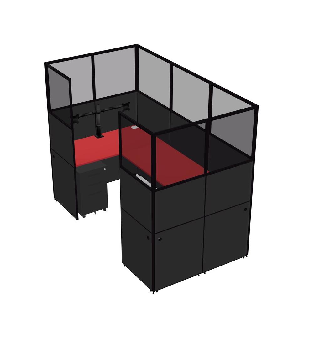 Prism Red U-shaped Panel System For 1 Person + Monitor Arm (double Arms) + Metal Mobile Drawers For 1 User(s)
