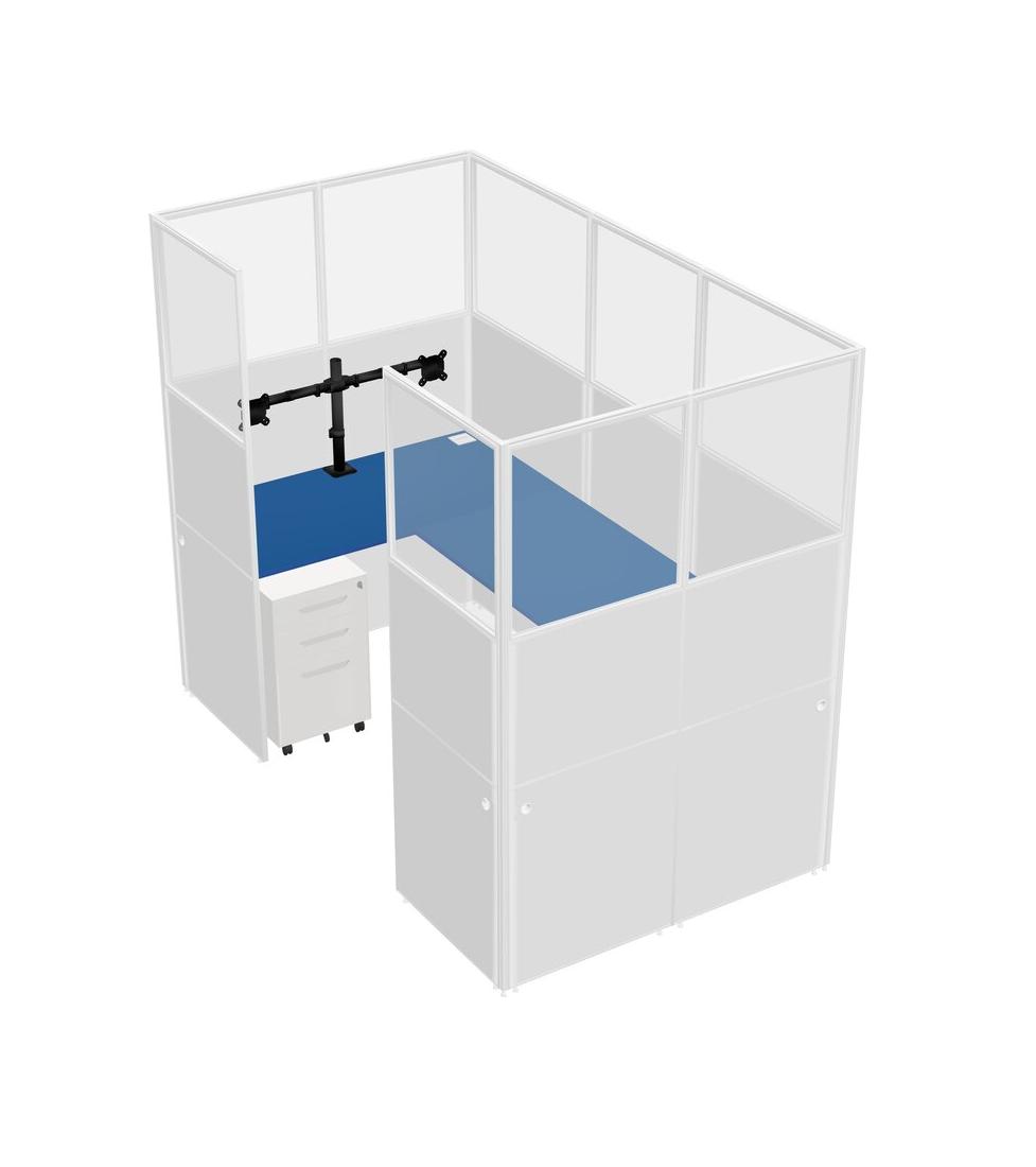 Prism Blue U-shaped Panel System For 1 Person + Monitor Arm (double Arms) + Metal Mobile Drawers For 1 User(s)