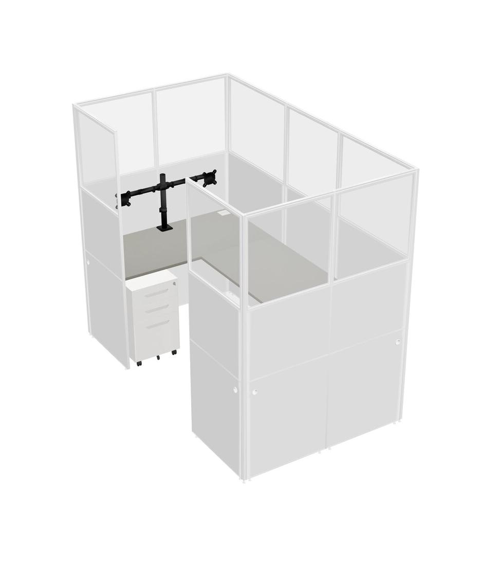 Grey Shadows U-shaped Panel System For 1 Person + Monitor Arm (double Arms) + Metal Mobile Drawers For 1 User(s)