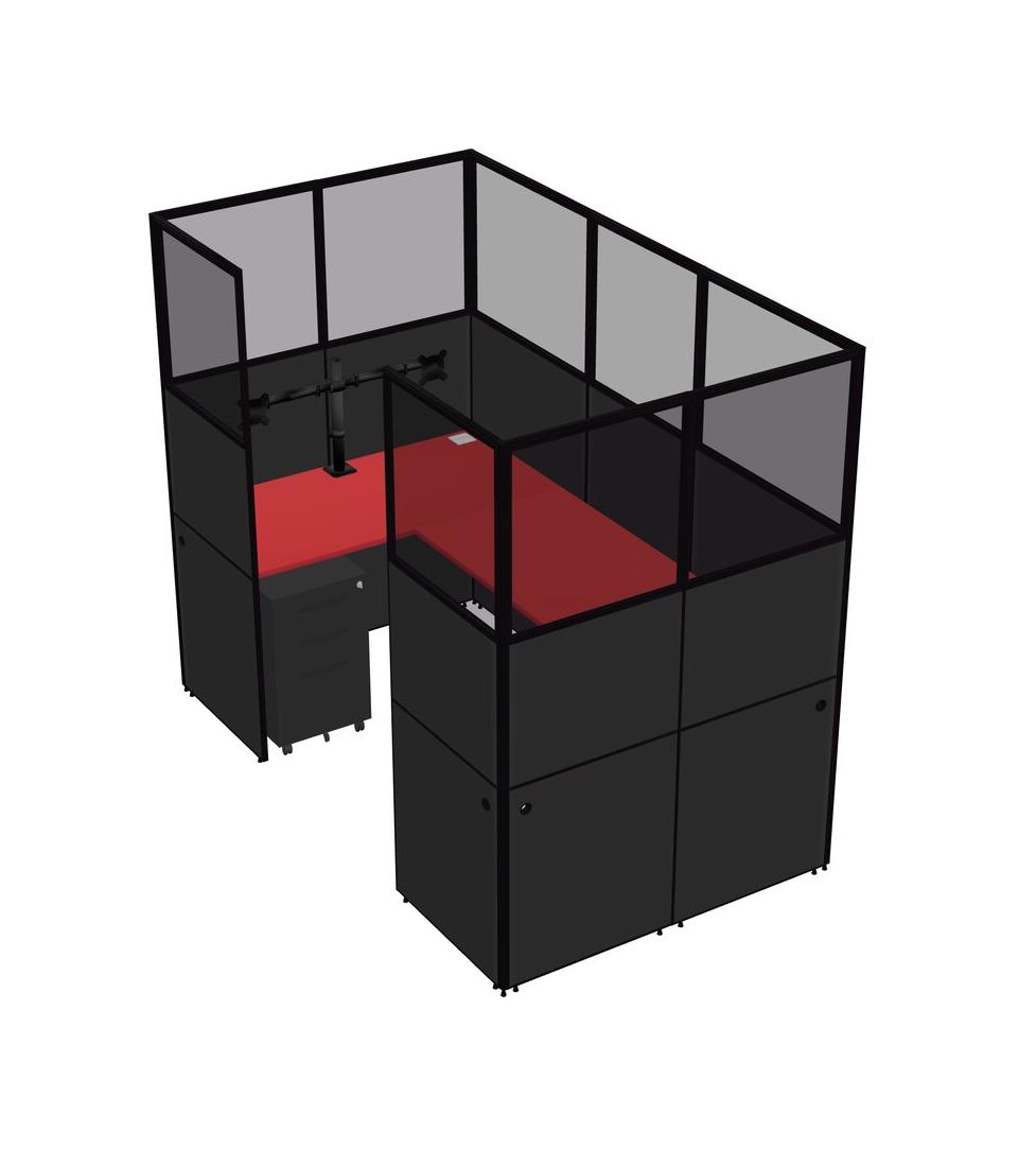Prism Red U-shaped Panel System For 1 Person + Monitor Arm (double Arms) + Metal Mobile Drawers For 1 User(s)