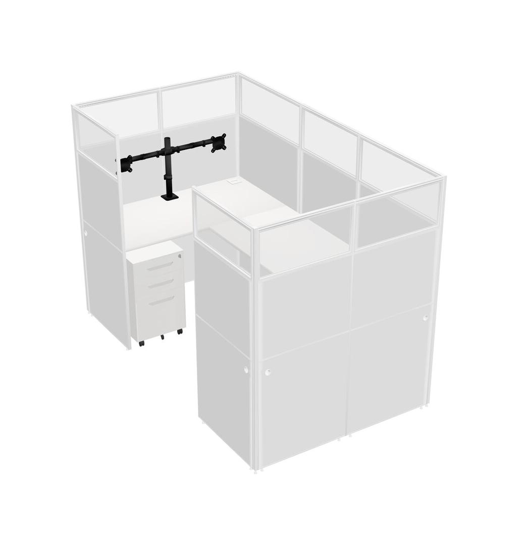 White U-shaped Panel System For 1 Person + Monitor Arm (double Arms) + Metal Mobile Drawers For 1 User(s)