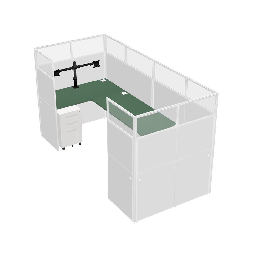 Green U-shaped Panel System For 1 Person + Monitor Arm (double Arms) + Metal Mobile Drawers For 1 User(s)