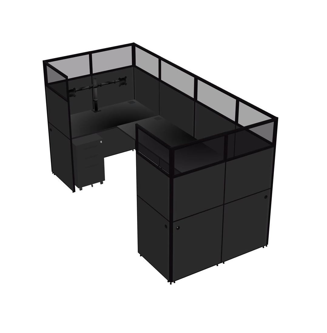 Black U-shaped Panel System For 1 Person + Monitor Arm (double Arms) + Metal Mobile Drawers For 1 User(s)
