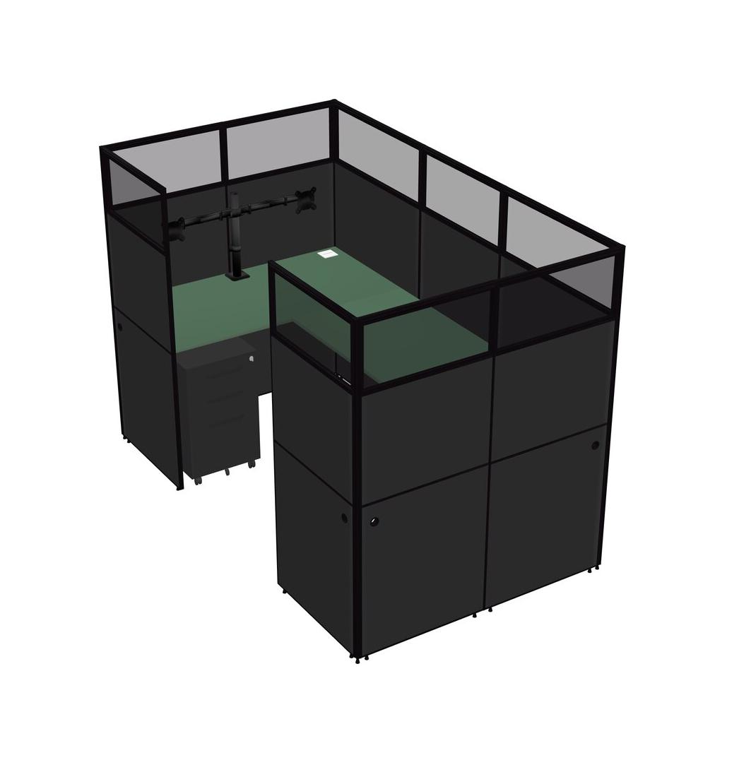Green U-shaped Panel System For 1 Person + Monitor Arm (double Arms) + Metal Mobile Drawers For 1 User(s)