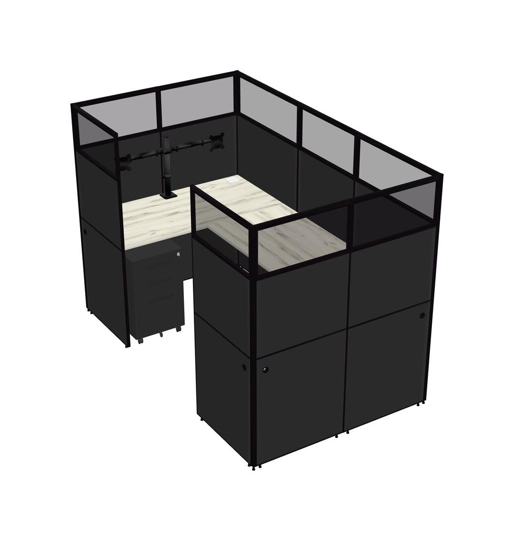 Heinne Holz U-shaped Panel System For 1 Person + Monitor Arm (double Arms) + Metal Mobile Drawers For 1 User(s)