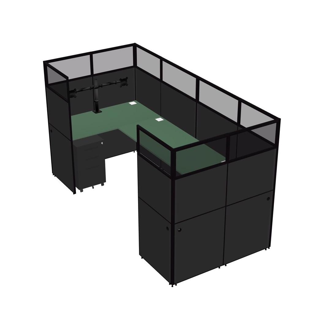 Green U-shaped Panel System For 1 Person + Monitor Arm (double Arms) + Metal Mobile Drawers For 1 User(s)