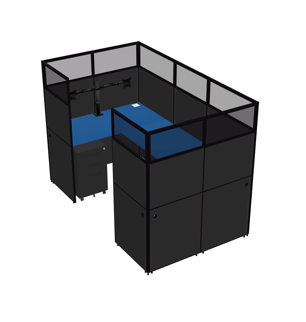 Prism Blue U-shaped Panel System For 1 Person + Monitor Arm (double Arms) + Metal Mobile Drawers For 1 User(s)