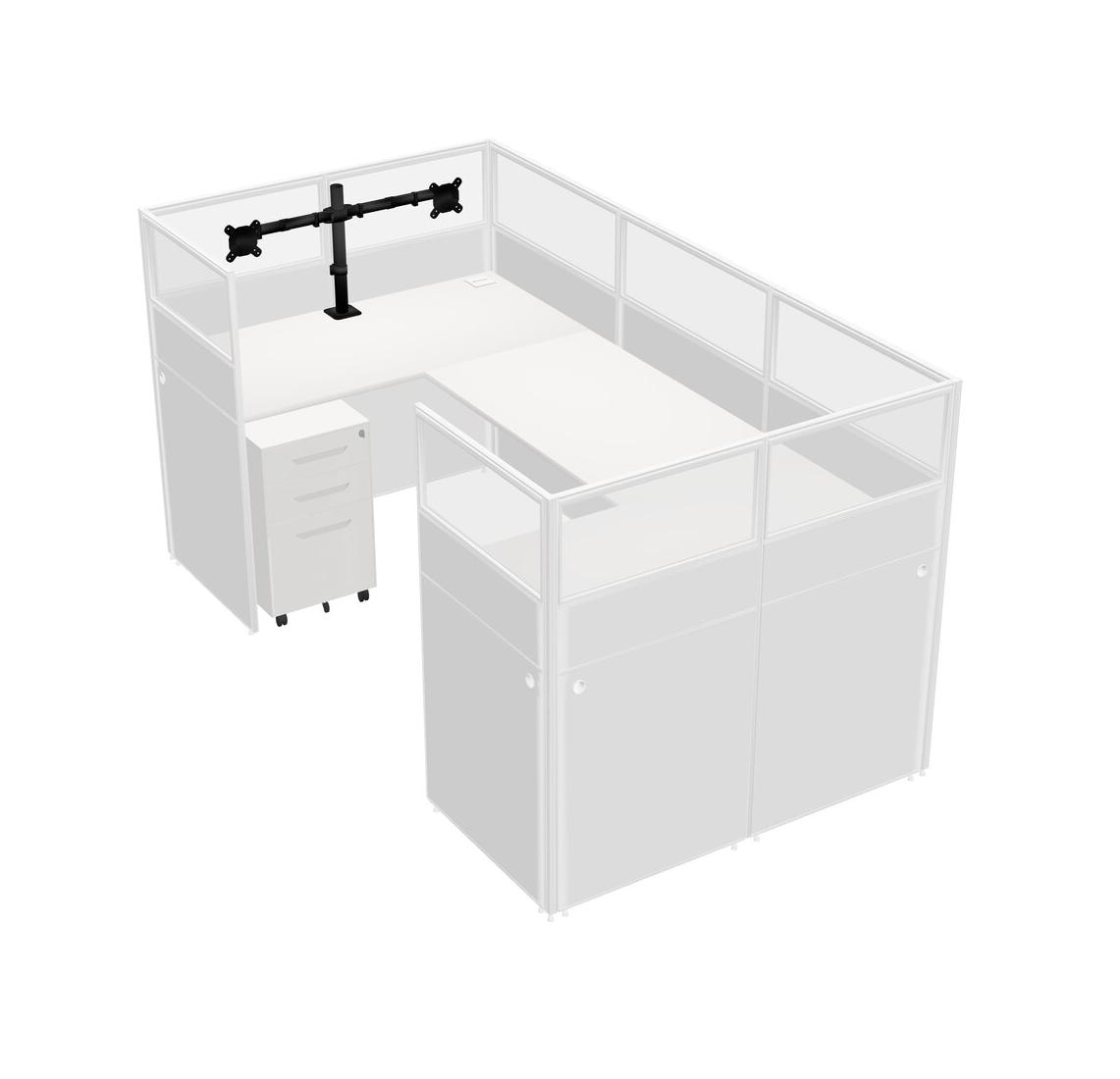 White U-shaped Panel System For 1 Person + Monitor Arm (double Arms) + Metal Mobile Drawers For 1 User(s)