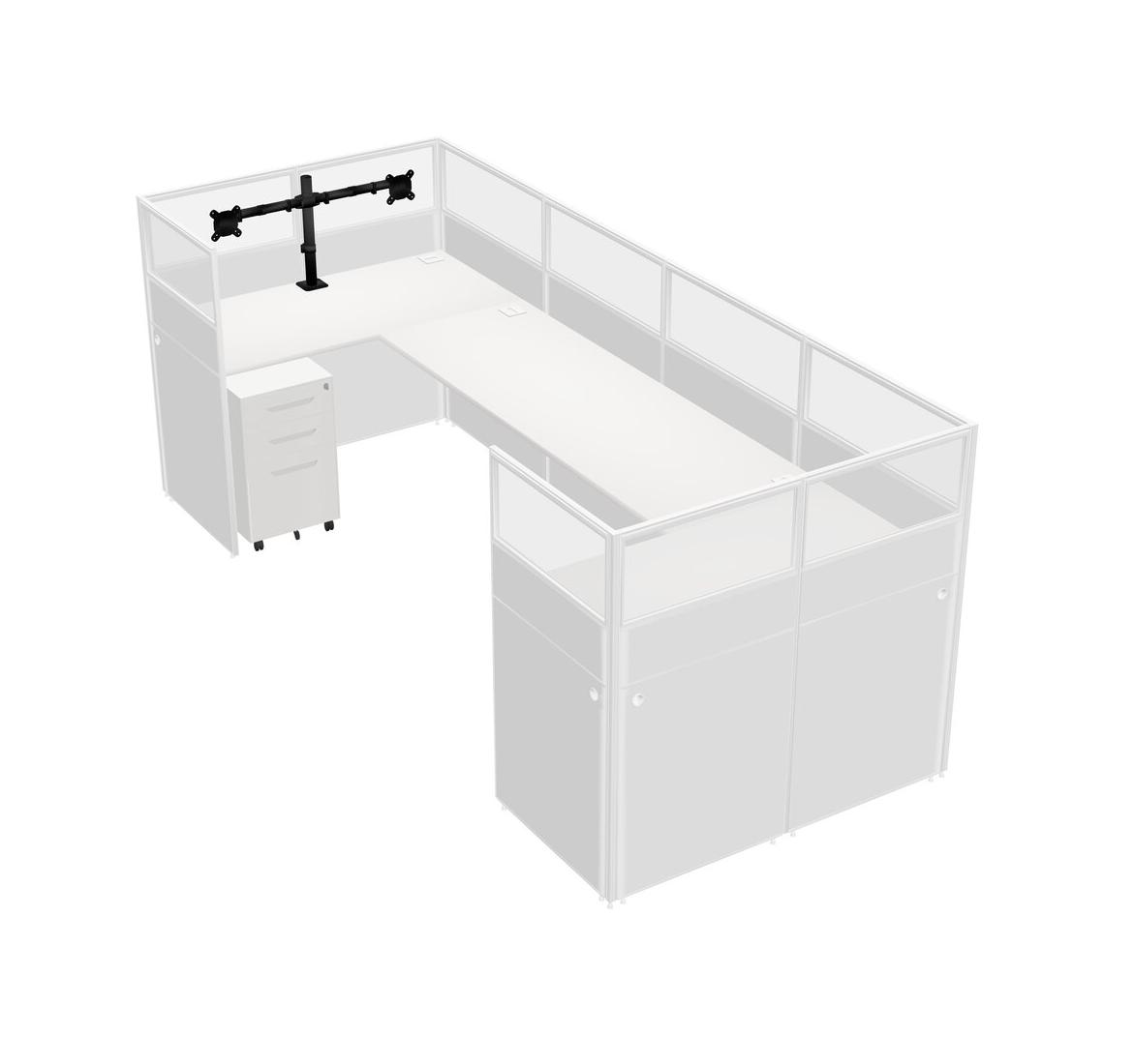 White U-shaped Panel System For 1 Person + Monitor Arm (double Arms) + Metal Mobile Drawers For 1 User(s)
