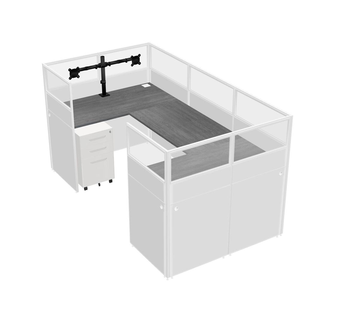 Grey U-shaped Panel System For 1 Person + Monitor Arm (double Arms) + Metal Mobile Drawers For 1 User(s)