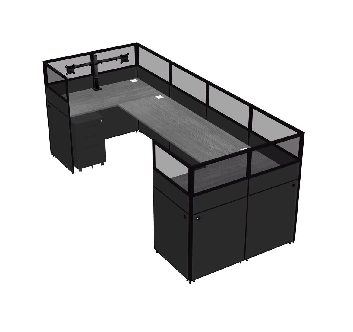 Grey U-shaped Panel System For 1 Person + Monitor Arm (double Arms) + Metal Mobile Drawers For 1 User(s)