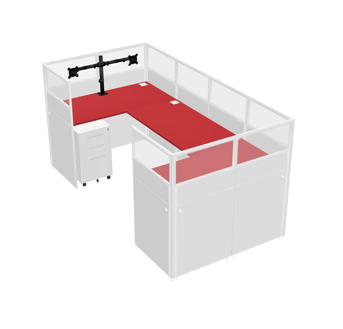 Prism Red U-shaped Panel System For 1 Person + Monitor Arm (double Arms) + Metal Mobile Drawers For 1 User(s)