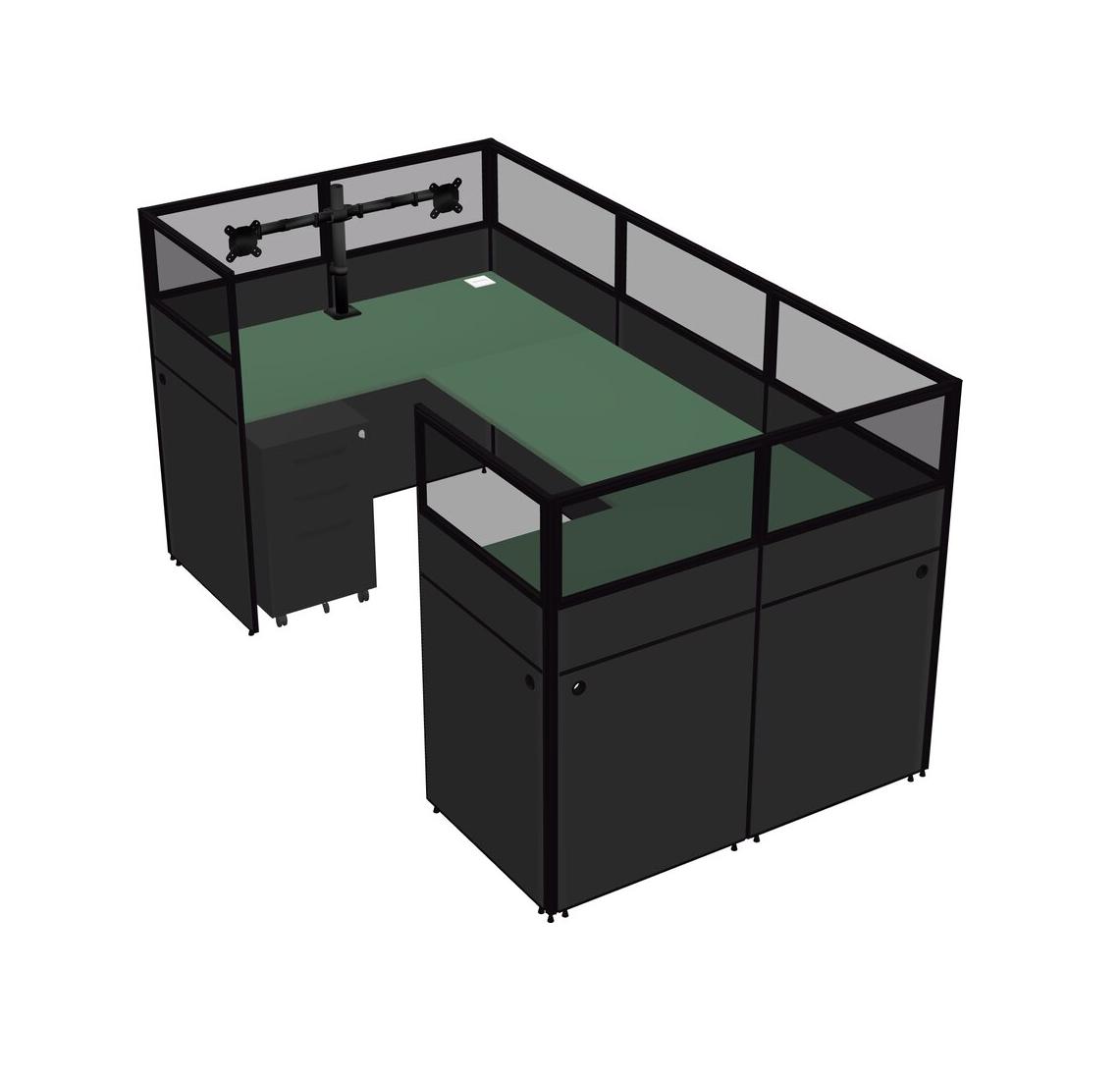 Green U-shaped Panel System For 1 Person + Monitor Arm (double Arms) + Metal Mobile Drawers For 1 User(s)