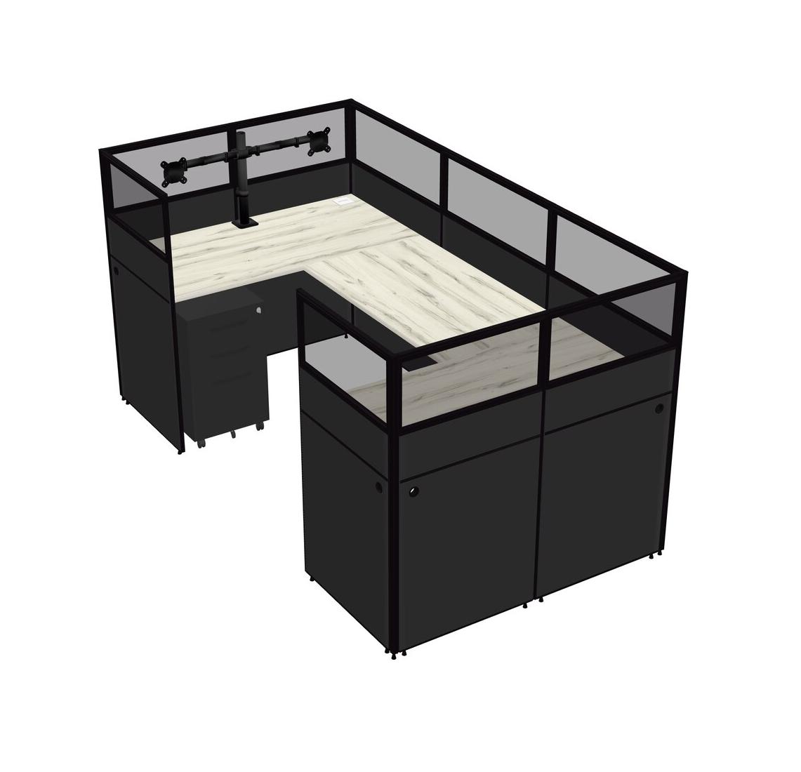 Heinne Holz U-shaped Panel System For 1 Person + Monitor Arm (double Arms) + Metal Mobile Drawers For 1 User(s)
