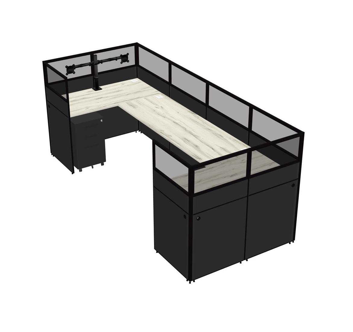 Heinne Holz U-shaped Panel System For 1 Person + Monitor Arm (double Arms) + Metal Mobile Drawers For 1 User(s)