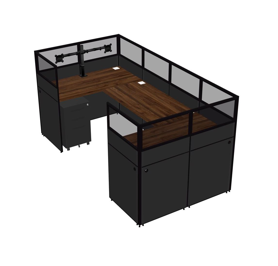 Columbia Walnut U-shaped Panel System For 1 Person + Monitor Arm (double Arms) + Metal Mobile Drawers For 1 User(s)