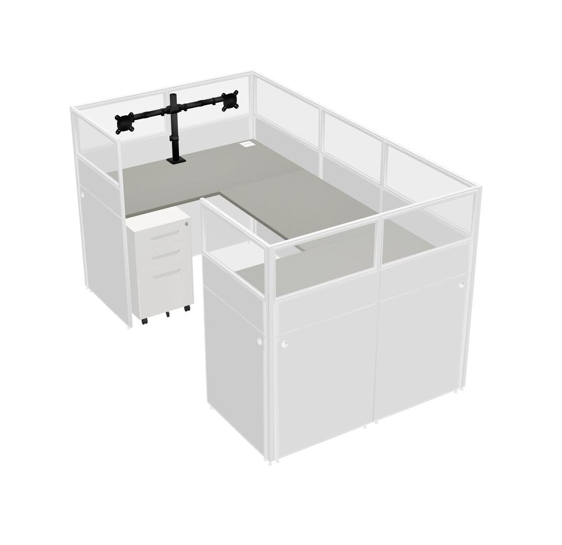 Grey Shadows U-shaped Panel System For 1 Person + Monitor Arm (double Arms) + Metal Mobile Drawers For 1 User(s)