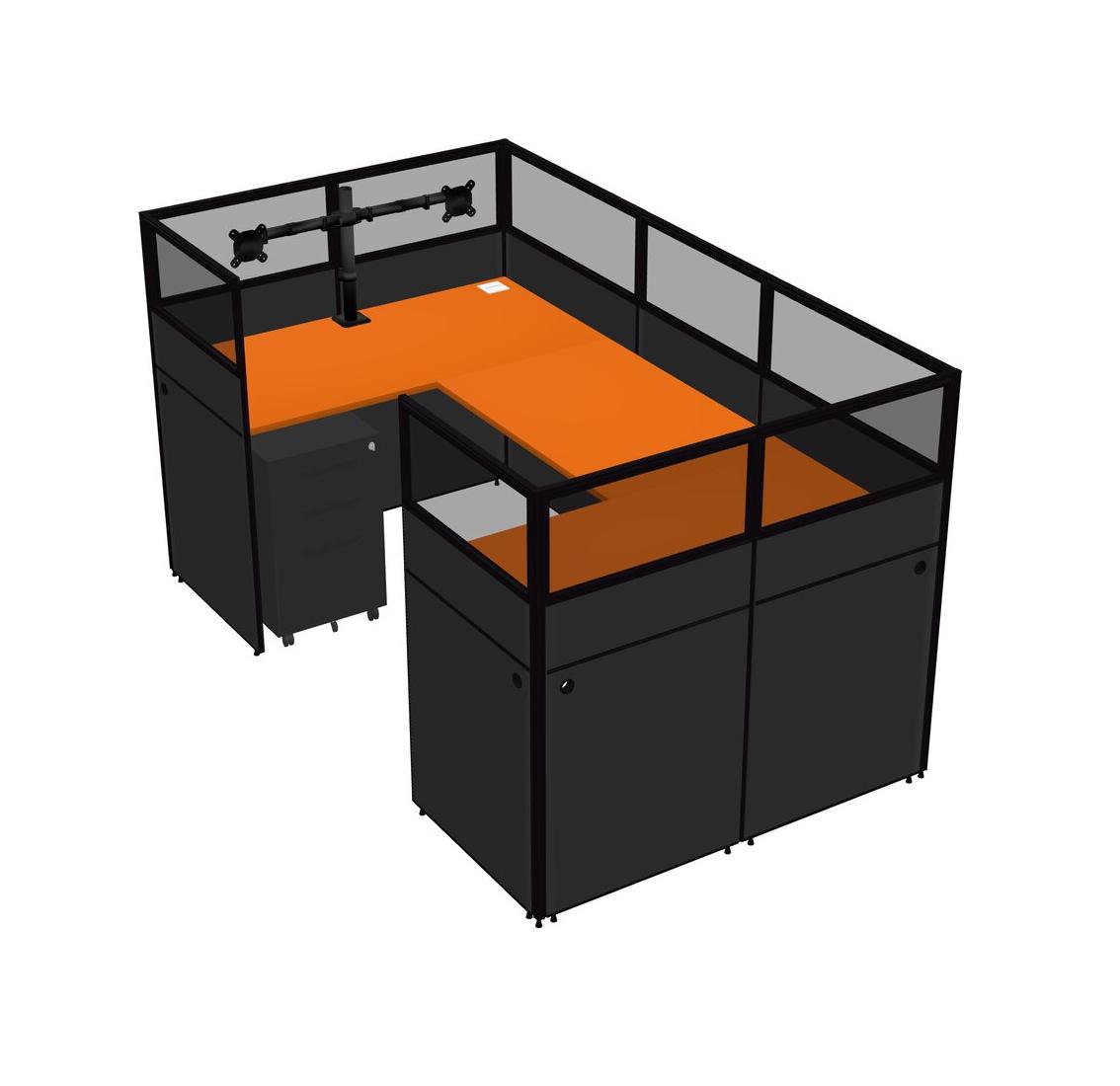 Orange U-shaped Panel System For 1 Person + Monitor Arm (double Arms) + Metal Mobile Drawers For 1 User(s)