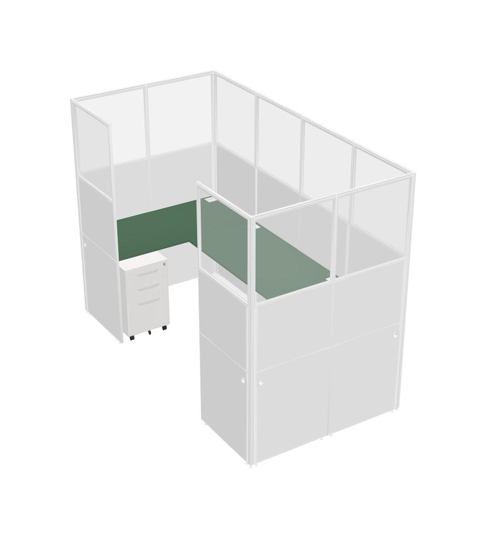 Green U-shaped Panel System For 1 Person + Metal Mobile Drawers For 1 User(s)