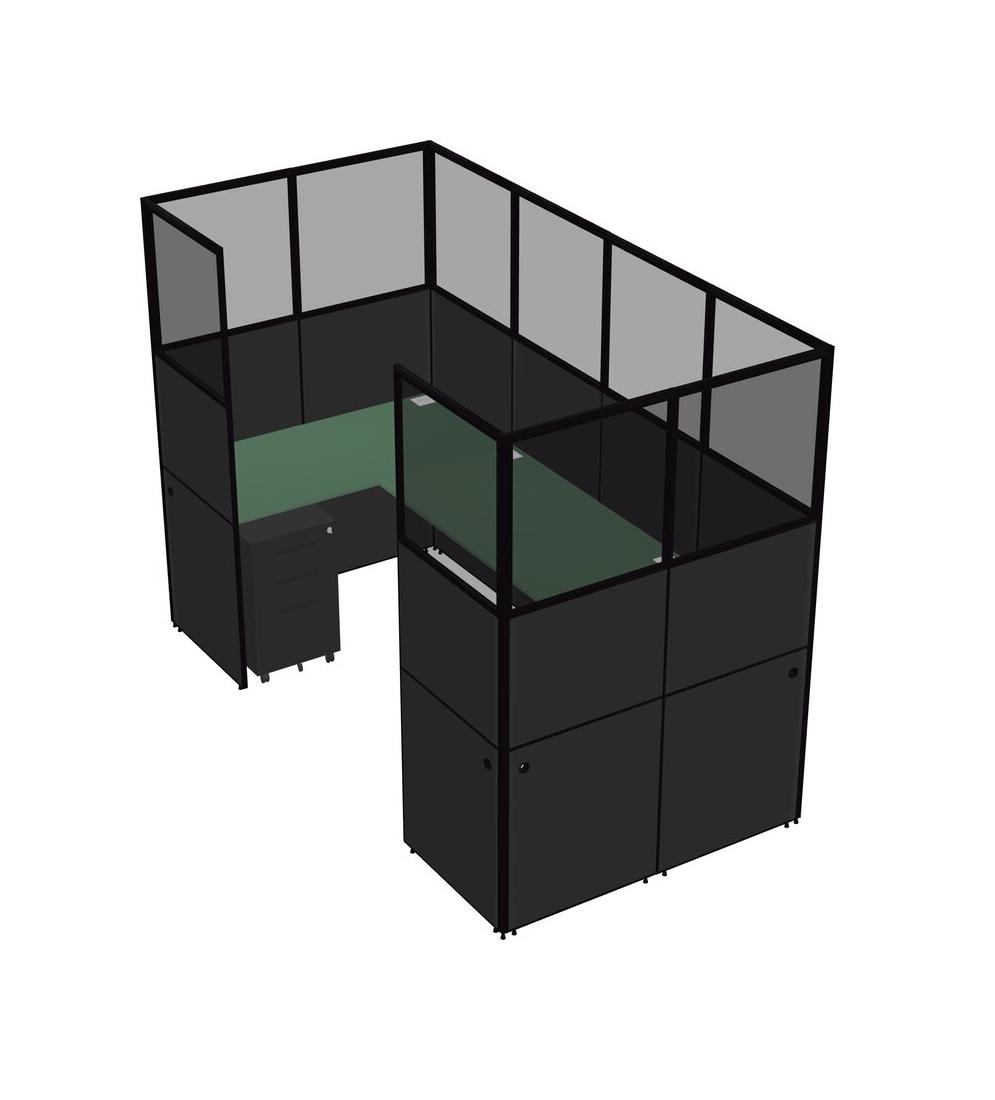 Green U-shaped Panel System For 1 Person + Metal Mobile Drawers For 1 User(s)