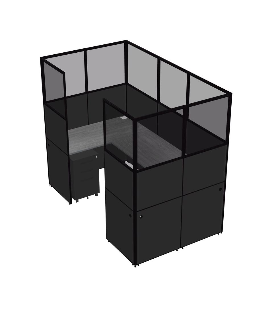 Grey U-shaped Panel System For 1 Person + Metal Mobile Drawers For 1 User(s)