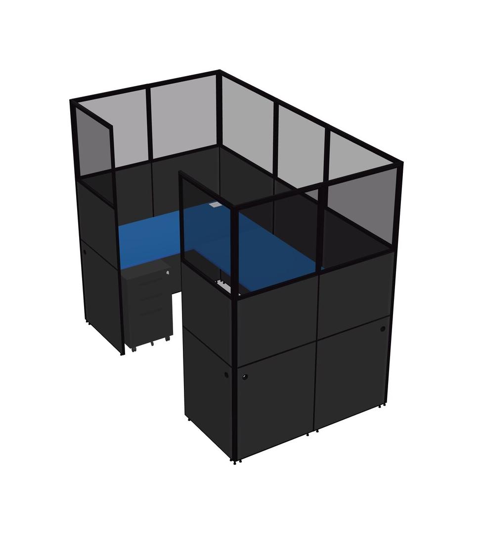 Prism Blue U-shaped Panel System For 1 Person + Metal Mobile Drawers For 1 User(s)