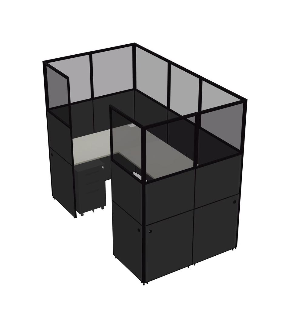 Grey Shadows U-shaped Panel System For 1 Person + Metal Mobile Drawers For 1 User(s)
