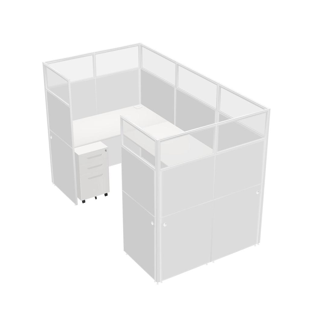 White U-shaped Panel System For 1 Person + Metal Mobile Drawers For 1 User(s)