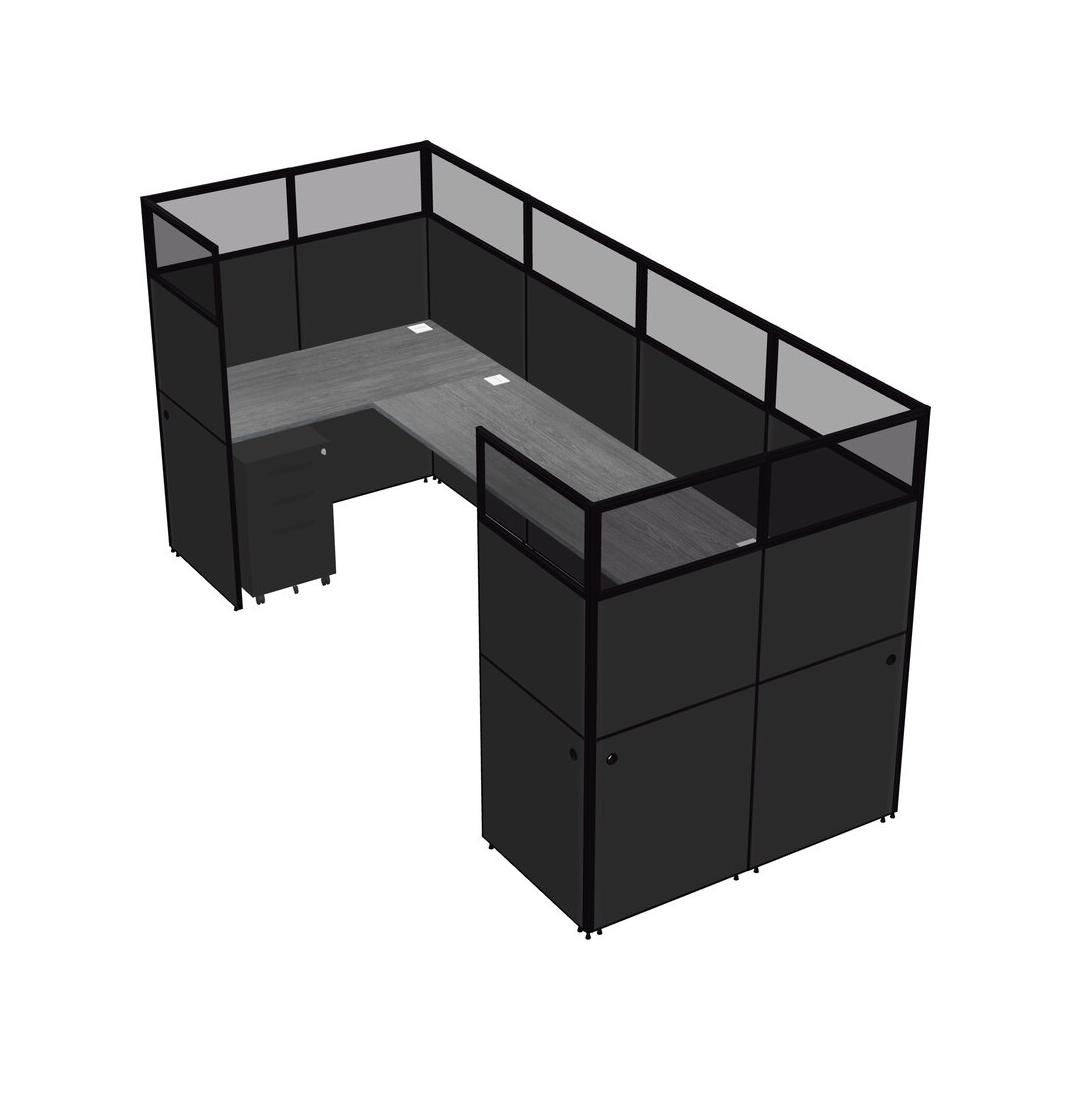 Grey U-shaped Panel System For 1 Person + Metal Mobile Drawers For 1 User(s)